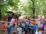 Après un pique-nique partagé avec les grands de l'école, les maternelles/CP ont eu le plaisir de poursuivre leur promenade à bord d'une calèche tractée par 3 chevaux de trait ! Plusieurs escales en forêt étaient au programme en compagnie de Julie la conteuse.