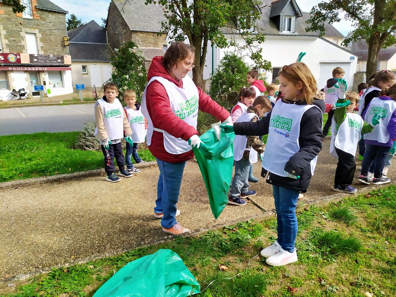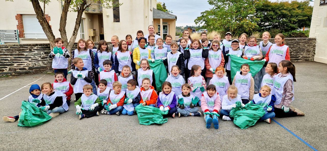 Ce vendredi 26 septembre après-midi, les élèves de la Grande Section au CM2 ont participé à l'opération "Nettoyons la nature ! " Munis de leurs gants, chasubles et sacs poubelles, ils ont ramassé divers déchets dans Loyat. Les plus grands ont ensuite procédé au tri. Bravo les enfants !